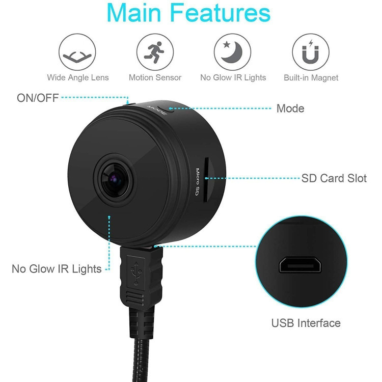 دوربین A9 دارای قابلیت تشخیص حرکت است که در صورتی که در محل نصب حرکتی رخ دهد، دوربین را فعال میکند. این ویژگی باعث میشود که فضای کارت حافظه میکرو SD کمتر مورد استفاده قرار گیرد. دوربین بیسیم کوچک A9 از کارت حافظه 64 گیگابایتی پشتیبانی میکند که به صورت مداوم تا 3 روز فیلمبرداری را ذخیره میکند. با فعال کردن گزینه تشخیص حرکت، ممکن است این زمان ذخیرهسازی افزایش یابد.دوربین کوچک رم خور A9 ، قابلیت دید در شب در تاریکی مطلق را تا فاصله 3 الی 5 متری دارد و میتواند تصاویر با وضوح بالا را در شرایط نور کم یا تاریکی نمایش دهد. با این حال، باید توجه داشت که دید در شب این دوربین مداربسته کوچک، نور قرمز رنگی ندارد و برای چشم بدون کمک وسایل نگهبانی، دیداری کاملاً نامشخص خواهد بود.